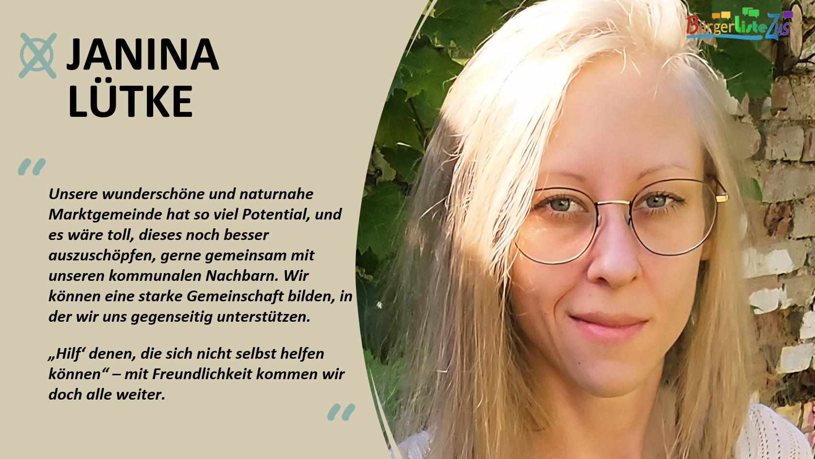 Wir wollen, dass einerseits die Verwaltung soziale Einrichtungen für alle Altersgruppen in genügendem Umfang schafft bzw. ausbaut, andererseits Vereine und Bürgerinitiativen wie „Bürger helfen Bürgern“ in ihren Aktivitäten soweit wie möglich unterstützt.